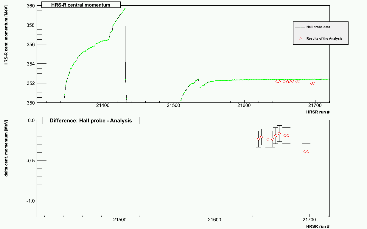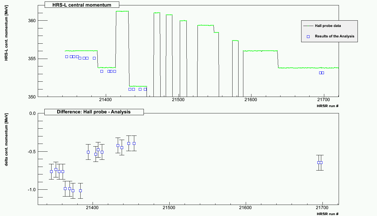 calculated central momentum of the spectrometer changes consistently with the Hall-probe data, but the difference between the